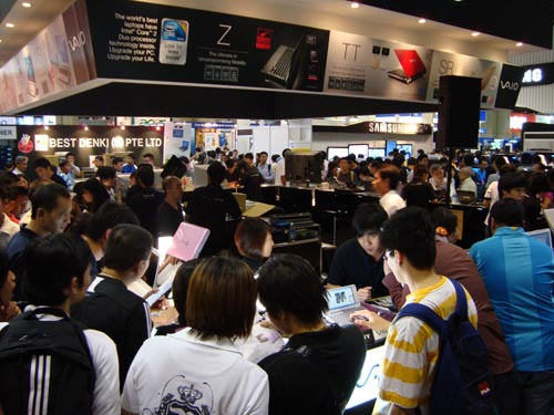 With Singapore having one of the highest IT literacy rates in the world and 80 per cent of households having at least one computer, it is of little wonder that exhibitors are cashing in on consumer dollars, with satisfied customers lugging home the latest gizmos. Stretching the dollar just a little further, consumers were able to participate in the “Lucky Purchaser’s Draw” standing a chance to win a grand prize of S$10,000 including an LCD television, camcorder and MP3 player for every S$50 spent.